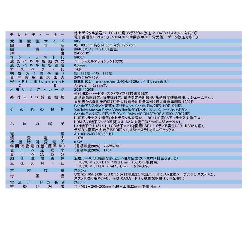 Android搭載 50V型4K対応液晶テレビ FT-NK5060B